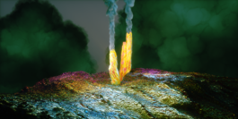 Visuals for a collaboration with graphic designer Irene Stracuzzi — project about Enceladus — sixth largest moon of Saturn. The spatial installation with a projection is meant to illustrate the speculation on the possibility of life forms existing there due to hydrothermal activity in the moon’s ocean.