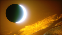 The story progresses through a “Powers of Ten” approach: starting with the close-ups of the planet’s surface, and progressing towards the final reveal in space.